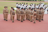 日期:2010-11-18 地點:馬鞍山運動場 攝影:黃偉臻先生 內容:香港聖約翰救傷隊於11月18日在馬鞍山運動場舉行了本年度的周年檢閱禮。本年的檢閱禮包括了一個過去沒有的救傷隊隊旗祝聖儀式,並邀得香港聖公會教省秘書長主持儀式。本隊多名長官隊員榮為護旗隊,穿著白色禮服為隊旗護航。